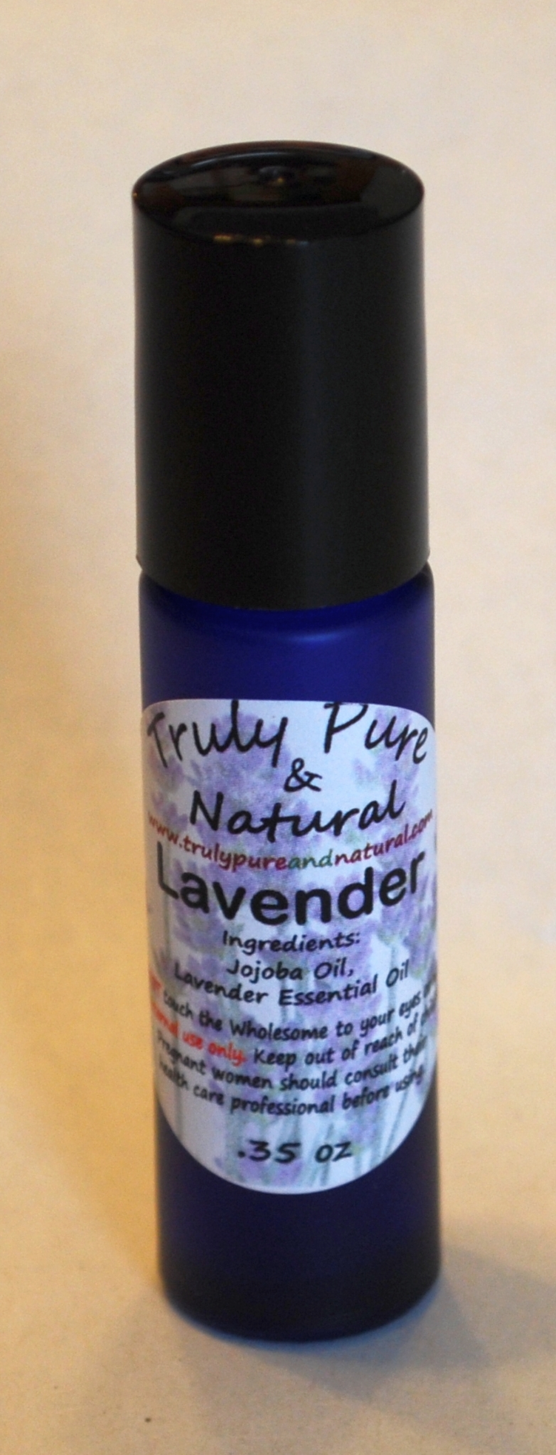 Lavender Essential Oil in a Frosted Blue Glass Roll-On - .35 oz